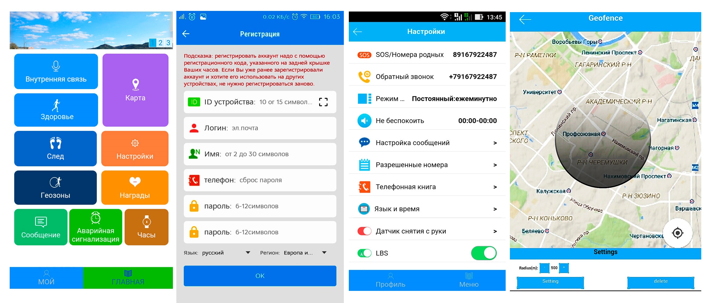 - Опция "режим на работа." Специален лагер. Родителите могат да избират времето, след което информацията ще бъде предавана по местонахождението на техните деца, 15,30 минути и т.н.