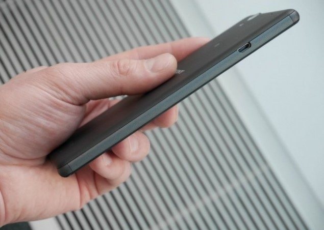 В допълнение към тези елементи, вдясно в долната част те поставиха бутон за управление на камерата, както и контрол на силата на звука. От лявата страна донесе MicroUSB без капаци и щепсели.Горният край се е превърнал в местоположението на жака за слушалки. Няма нищо на дъното. Не е ясно защо е така да се промени позицията на съединителите, но си струва да се отбележи това зареждането на връзката отстрани не е много удобно, Ето защо, дизайнът на телефона има два недостатъка: