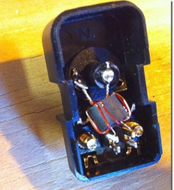 - След това можете да съберете цялата структура. Поставете пръчката в кутията и затегнете гайката от едната страна. От вътрешната страна на пръта е необходимо да поставите терминала (той е изработен от медна жица под формата на пръстен с опашка за последващо запояване) и затегнете втората гайка.