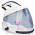 Устройството се загрява бързо и има мощна струя от пара, която може да изглажда всички видове тъкани - от коприна до груби материали като завеса. Устойчивото помага за грижата за костюми и ризи вертикална стойка с гардероба.Друг плюс на този парна машина е, че работи върху обикновена течаща вода.