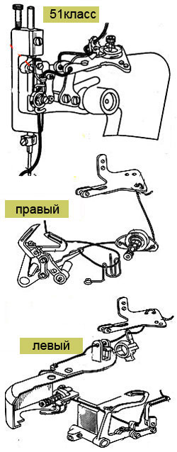 Въпреки големия брой съвременни шевни машини, много от тях използват китайската "зелена" триточкови overlockers, Те бяха популярни през 90-те и днес остават преобладаващи поради сравнително високото им качество. Тези китайски автомобили са копия на домашни класове с надценяване от 51 класа, произведени съответно в Подолск, а техният шаблон е същият.