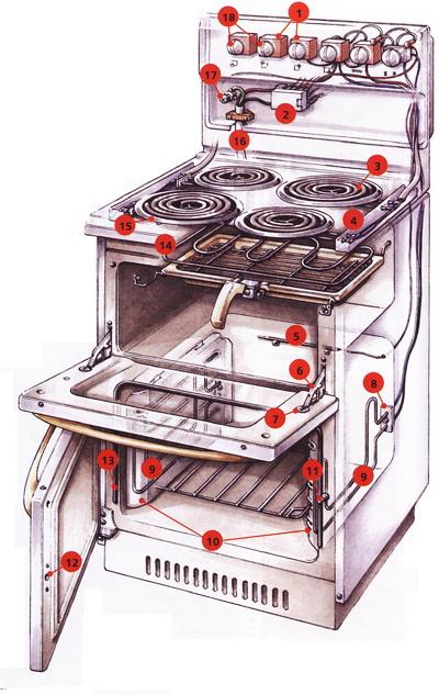 Топлината, необходима за готвене на различни ястия в шкафа, се произвежда чрез специална конфигурация на нагревателни елементи, които са специално произведени със специална технология за използване в печки на електрически печки. Количеството вътрешно отопление се регулира от термостат, разположен на контролния панел. Повечето фурни оборудван с таймер, което не само изключва устройството в точното време, но и може да го включи - ако потребителят предварително инсталира необходимата програма.