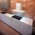 - Качулки остров тип, Те са инсталирани над повърхността на плочата, а инсталацията за вентилация се извършва на тавана. Тази значима конструкция е най-добре маскирана под опънат таван. Този тип не е разпространен поради продължителни инсталации и високи разходи.