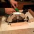 Има и друг метод на производство, при който българинът е монтиран под масата, той е по-лесен за изпълнение, но се запазва използваемостта на оборудването., За производството на такъв инструмент се нуждаете от маса с голяма работна повърхност, в средата на която се изрязва дупка. Размерът му трябва да е достатъчен, за да може дискът да се върти свободно. След това, мелницата се закрепва с болтове.Отстрани са фиксирани два направляващи, които ще преместят плочката в процеса на рязане.