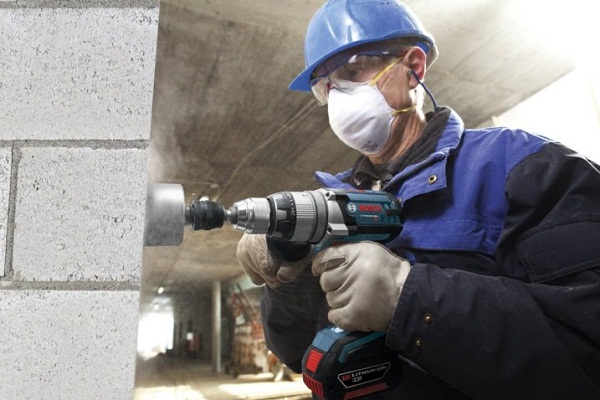 Когато пробивате бетон или тухла, трябва да включите шока и да използвате респиратор, защото ще има много прах.