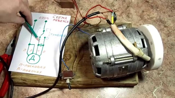 В случай на използване на демонтиран двигател от автоматична перална машина, можете да направите машина за заточване по същия начин, като единствената разлика е в свързването на електроенергия, Двигателят от обикновена перална машина има четири проводника: два са свързани към работната намотка, а другите две към стартовата. За да се определи работната намотка, е достатъчно да се измери съпротивлението и на двете. Съпротивлението на стартовата намотка е 30 ома, а работникът има само 12 ома. Двигателите на модерните автомобили имат шест извода, два от които са изход на тахометър с съпротивление от 70 ома. Намирането им няма да е лесно. Тези проводници трябва да са изолирани.