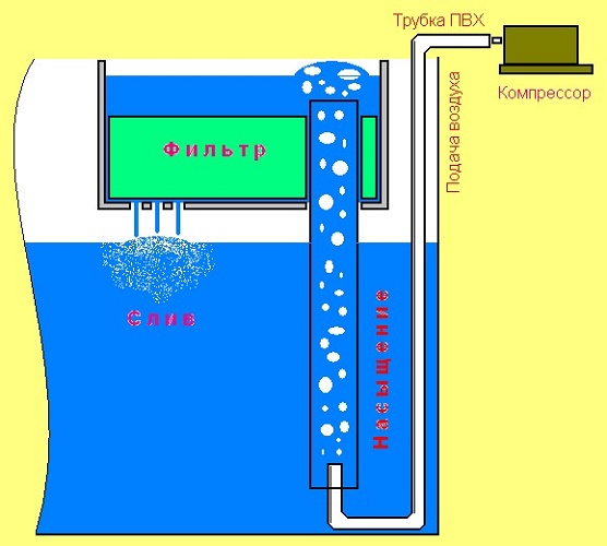 Друг очевиден плюс аерация - смесване на различни слоеве вода, Това е важно за поддържане на средната температура в различните части на аквариума. Водата за разбъркване е по-добре наситена с кислород.
