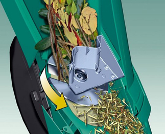 Под тръбата за дозиране на натрошена трева с клони се поставя кофа или друг контейнер по време на работа с уреда, така че преработените растения да не се разпадат.