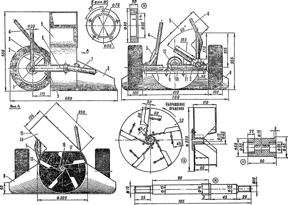 За да направите ротационен снежен вентилатор, можете да използвате чертежите по-долу.