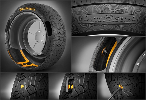 В сърцето на изобретението са две технологии. първи Contisense Той е проектиран да проследява текущото състояние на гумите. Това се случва по следния начин. Вградените сензори с определена честота измерват дълбочината на протектора и температурата и след това предават получената информация на автомобилния приемник или директно на смартфона на водача. Това позволява не само "да се открие" разбиването на колелото във времето, но и да се определи дали е време да се мисли за закупуване на нов комплект гума. Създателите планират да допълнят Contisense с параметри, които позволяват да се оцени състоянието на пътната повърхност (температура на асфалта, наличие на валежи и др.).