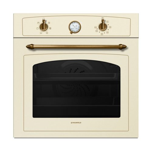 Най-добрата фурна от 2017 г. е друг вграден модел от Maunfeld. Тази чудесна електрическа фурна, направена в ретро дизайн, ще зарадва собствениците със своето качество и функционалност в продължение на много години. На цена от 28,290 рубли. външният вид на устройството е много рафиниран: комбинацията от бежов преден панел и златни фитинги ви позволява да се потопите в луксозната атмосфера на 20-те години на миналия век. SCHOTT тройното топлоустойчиво стъкло има цвят, близък до черния, когато подсветката е изключена. Вратата е сменяема.