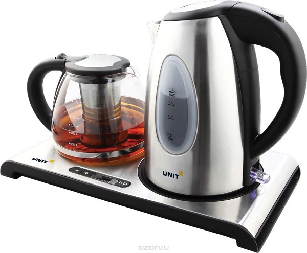На второ място - устройство, изработено от неръждаема стомана от фирма "Unit". Това е сравнително нов играч на пазара на домакински уреди, който обаче вече успя да получи достатъчно популярност. Домакинските уреди от Unit са известни със своята достъпност и високо качество на разумна цена. Цената на устройството е 2770 рубли. Моделът е новост от 2018 г. и е комплект от основното устройство и чайник.