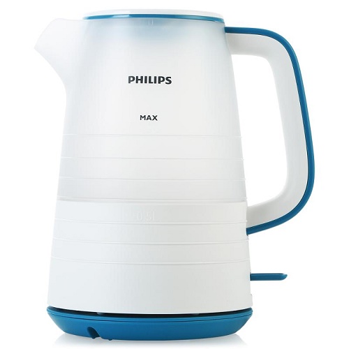 Най-добрата електрическа кана през 2018 г. от фирма "Philips". Трудно е да се намери човек, който никога не е чувал за тази компания. Домакинските уреди от тази марка са влезли в живота на руския потребител. Обхватът на фирмата включва електроника, битова и осветителна техника, кухненски приспособления. Този чайник се предлага само в една цветова схема, сребристо-бяла. Футуристичен дизайн трябва да помисли за високотехнологичното устройство. Цената на устройството е равна на 1490 рубли. Резервоарът за вода има обем от 1,5 литра, а максималната мощност е 2200 вата. Като елемент на отопление служи традиционната спирала от затворен тип с покритие от неръждаема стомана.