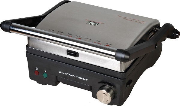 настояще пълен контрол на температурата и незалепващо покритие на вътрешната облицовка на апарата. Предлага се с доста удобна тава за събиране на мазнини при готвене и грил. Устройството за управление е снабдено с добре четлив дисплей и няколко подвижни плочи (включително за приготвяне на вафли). Има таймер и възможността да се използва горният слой като отделен модул за готвене. Устройството може да се препоръча на широк кръг потребители.