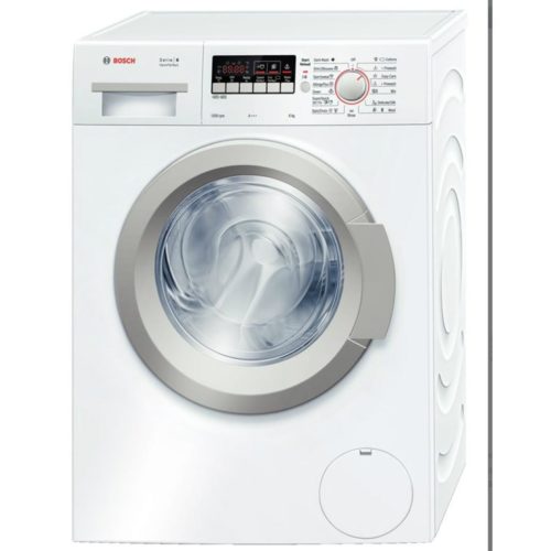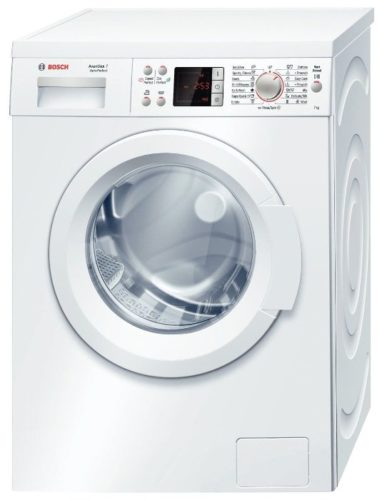 Четвърто място заслужава Бош WLK 24261 за немската надеждност и качество на строителството. Средният срок на експлоатация на машините на тази марка е 15 години, което е по-високо от средното. Ако говорим за характеристиките, те не са невероятни: размери 60x45x85, предно зареждане, въртене до 1200 r / min. Само 15 режима на работа, сред тях и бързо миене.Но това, което струва по-подробно, е така клас на енергийна ефективност: в това устройство е A +++. Такъв зашеметяващ резултат е постигнат благодарение на технологията за директно впръскване. Но консумацията на вода в същото време на средно ниво - 46 литра на стандартен цикъл. Има забавена функция за стартиране и защита от деца.